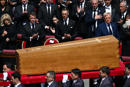 Στην νεκρώσιμη ακολουθία χοροστάτησε ο Τζοβάνι Μπατίστα Ρε, ο μεγαλύτερος σε ηλικία από όλους τους καρδινάλιους, με απλούστερο και πιο σύντομο τελετουργικό σε σχέση με το παρελθόν, σύμφωνα με τις επιθυμίες του ποντίφικα. Μάλιστα όταν αναφέρθηκε στην αλληλεγγύη που επέδειξε ο Φραγκίσκος στους πρόσφυγες -με τις παρουσίες του, μεταξύ άλλων, στη Λαμπεντούζα και στη Λέσβο- πολλοί από τους πιστούς ξέσπασαν σε χειροκροτήματα –όχι πάντως ο Τραμπ…
