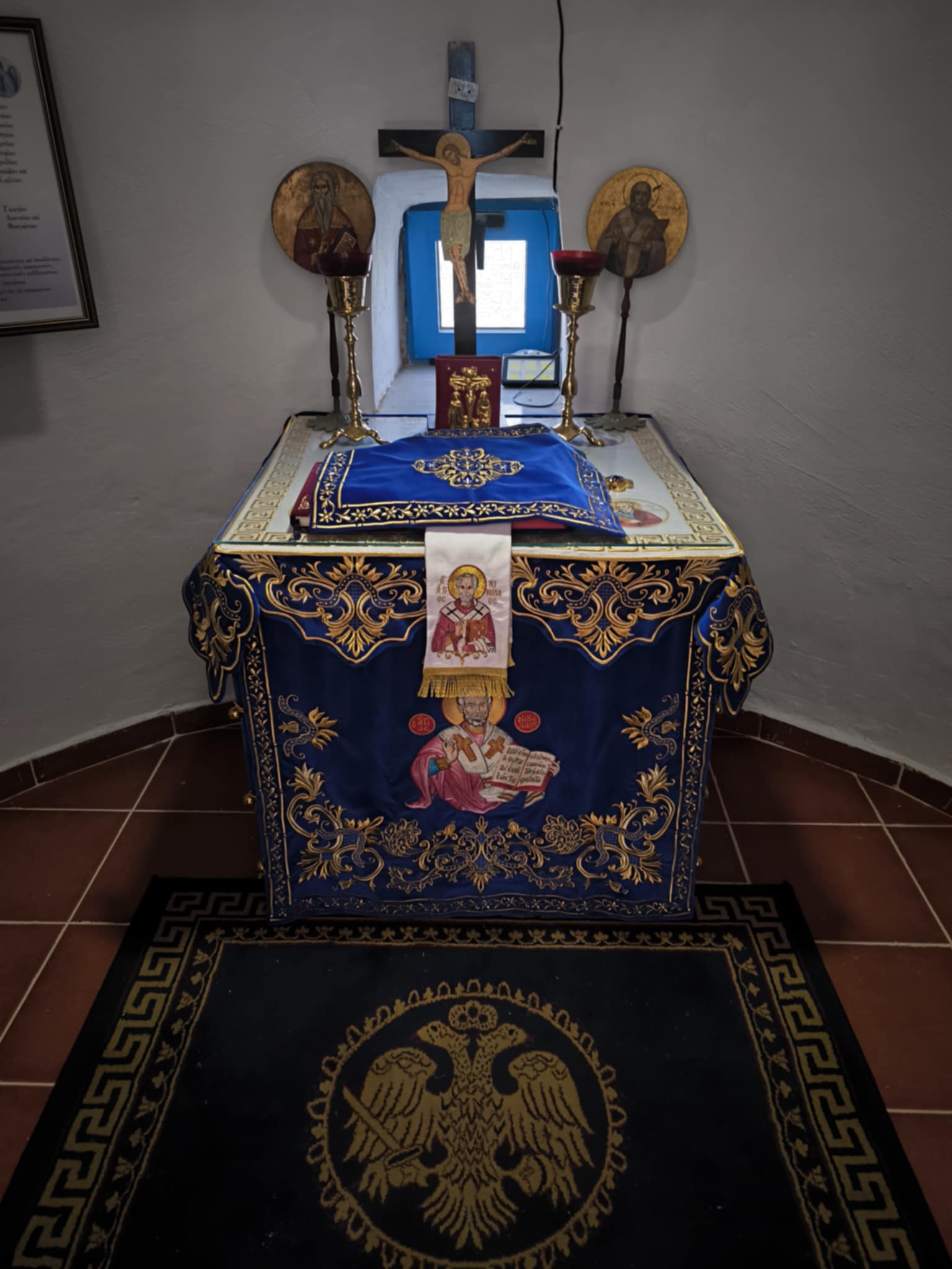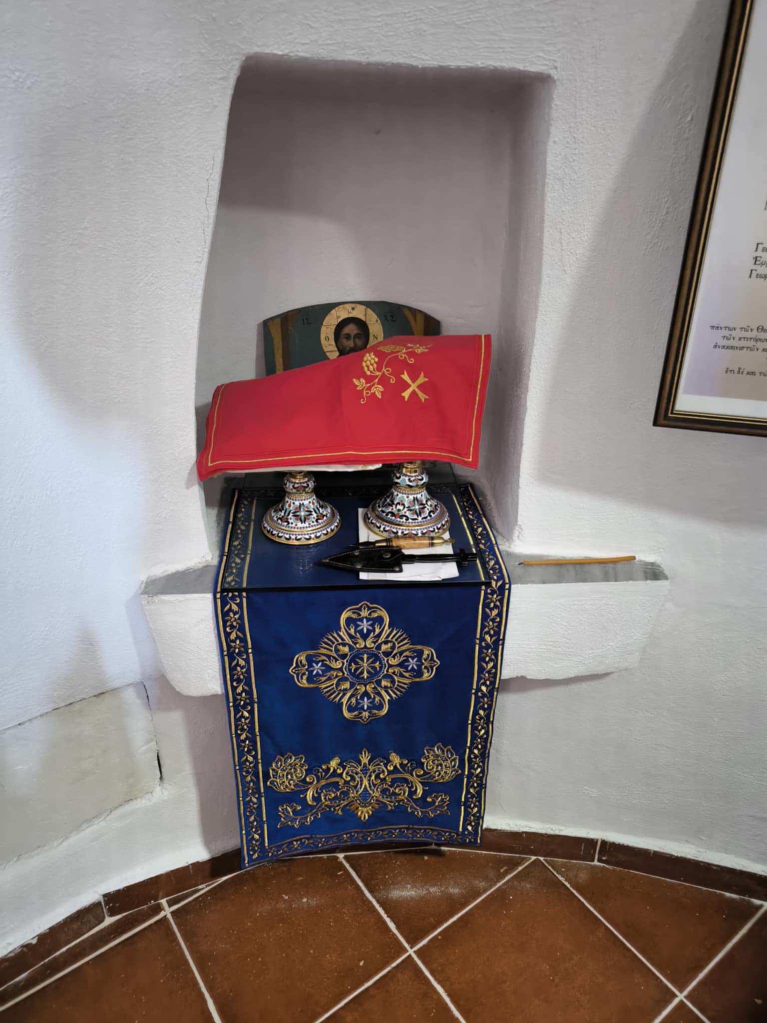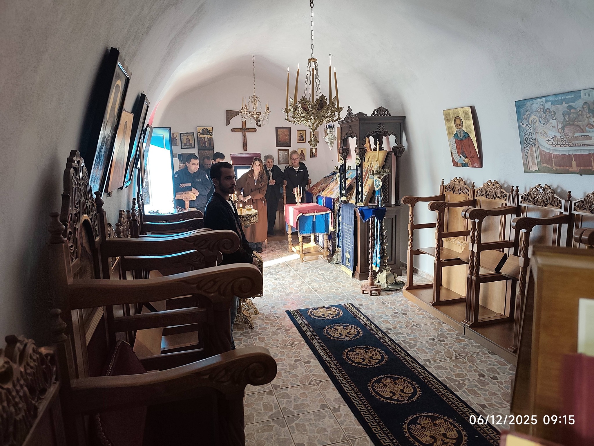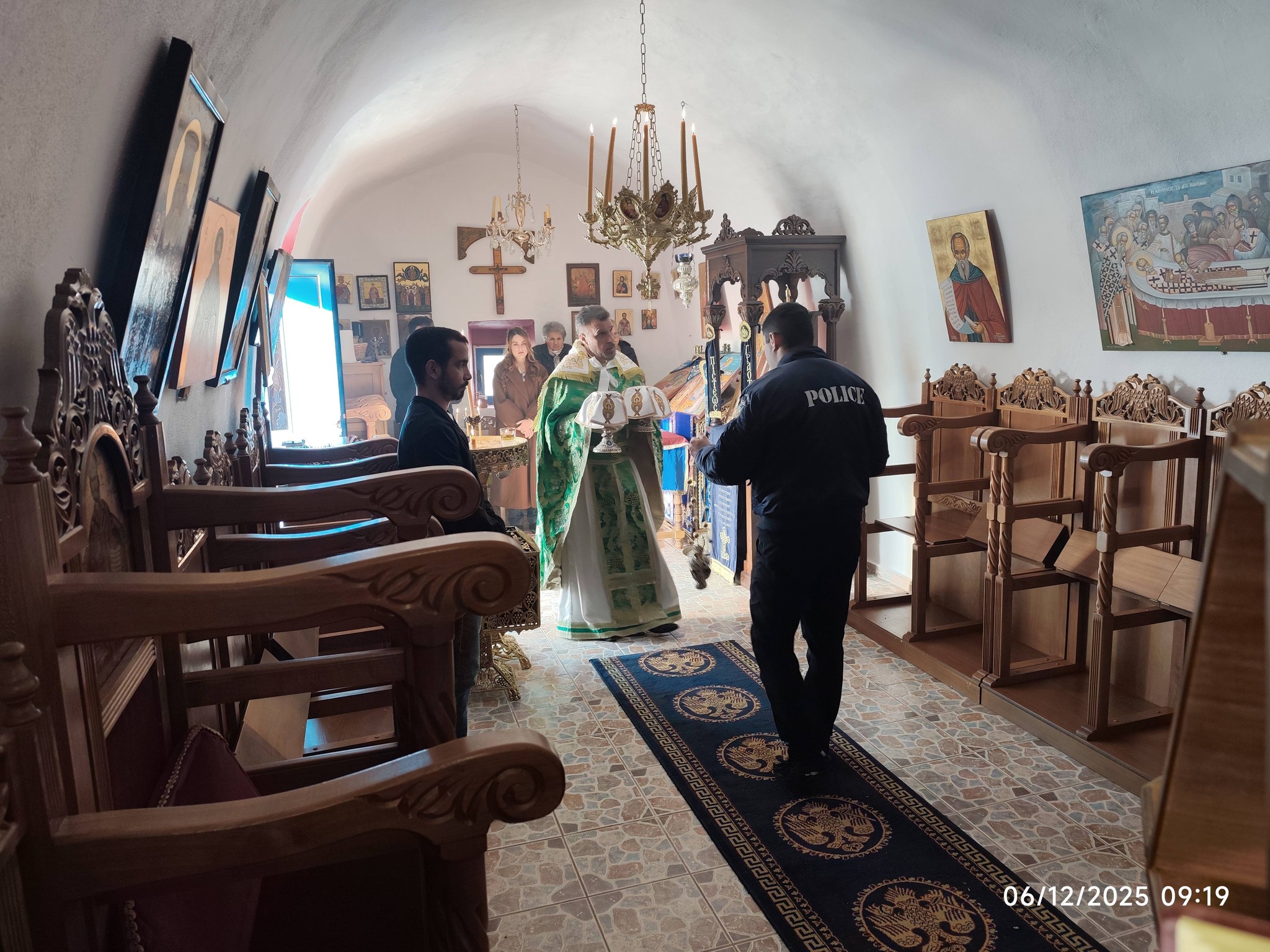 Η πανηγυρική Θεία Λειτουργία τελέσθηκε, με την ευλογία του επιχωρίου Μητροπολίτου κ. Σεραφείμ, από επισκέπτη Ιερέα εκ της Κύπρου, ο οποίος ευλόγησε τους προσφερθέντες άρτους και ανέπεμψε δεήσεις για τους ναυτικούς μας.