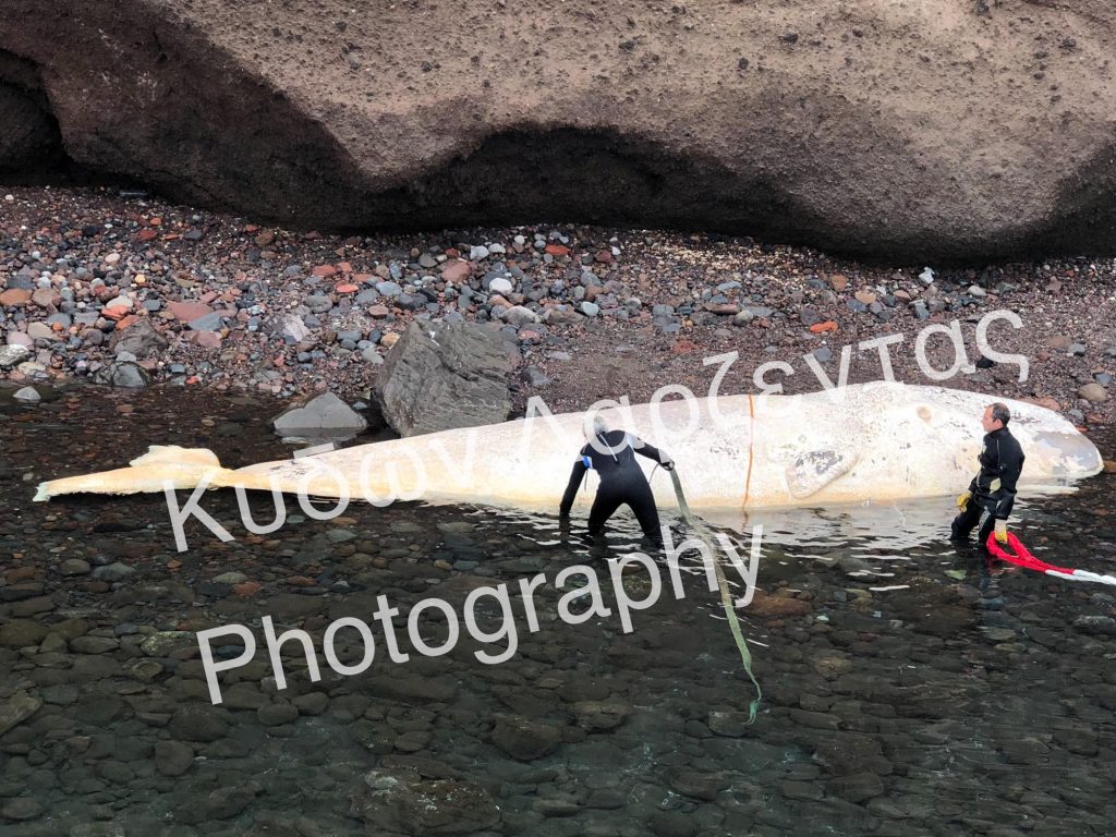 Τριάντα κιλά από πλαστικές σακούλες βρέθηκαν στο στομάχι της νεκρή φάλαινας 7 τόνων και 9 μέτρων που ξεβράστηκε στην Σαντορίνη.