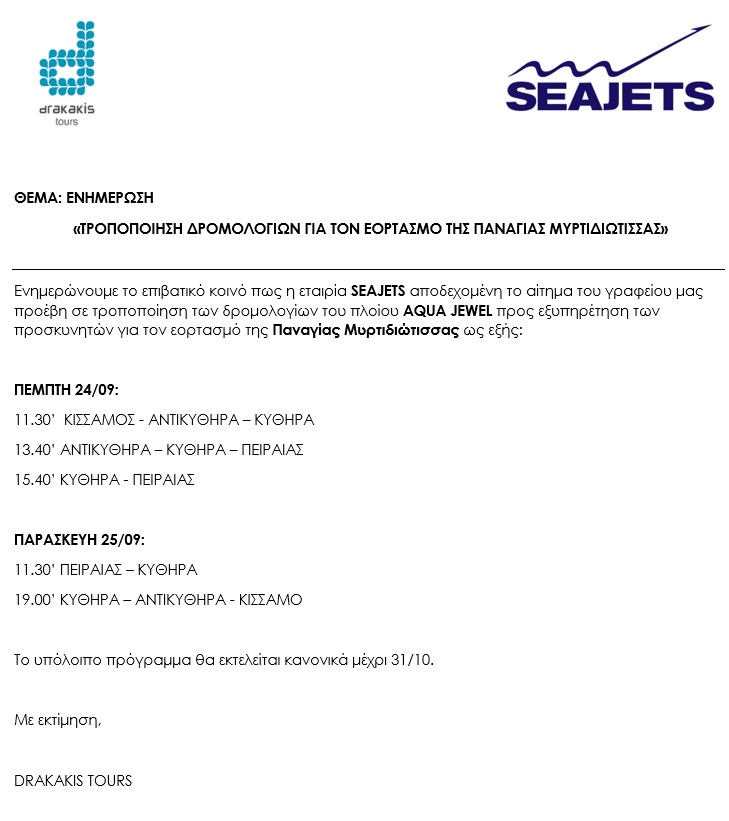 - Τροποποίηση δρομολογίων 24&25/9