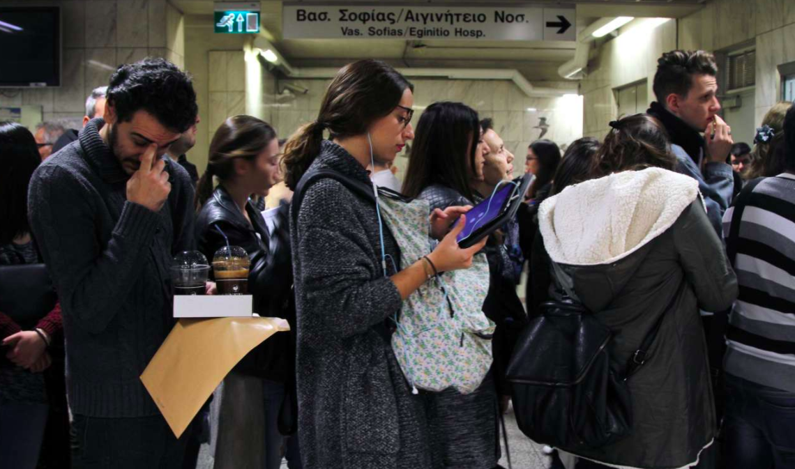 Θα είμαι ειλικρινής. Κατεβαίνοντας τις σκάλες στον σταθμό του Μεγάρου Μουσικής, περίμενα να πέσω πάνω σε μια ουρά 10, άντε 15 ατόμων. Σκεφτόμουν ότι οι περισσότεροι δουλεύουν και αποκλείεται κάποιος να κάτσει σε μια ουρά πάνω από μία ώρα για να βγάλει μια κάρτα. Οι αυταπάτες μου τελείωσαν μαζί με τα σκαλιά. Στρίβοντας προς τα εκδοτήρια, έπεσα πάνω σε μία ουρά περίπου 100 ατόμων. Και πάνω από την ουρά σηκωνόταν σαν πυρηνικό μανιτάρι ένα βουητό από αναστεναγμούς, αναθέματα και γέλια.