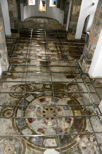 Κάτω από τους σοβάδες ανακαλύφθηκαν παράθυρα που είχαν κλειστεί, φρέσκα (αγιογραφίες) και αυτό το καταπληκτικό μωσαϊκό κάτω από το δάπεδο».