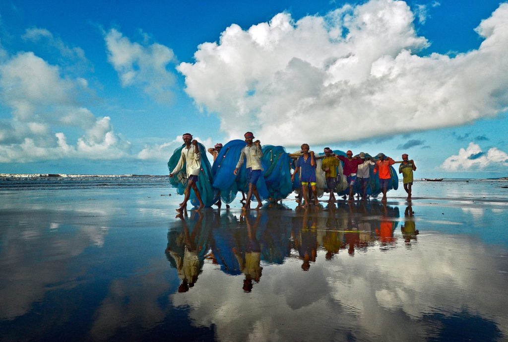 Τρίτη θέση. «Ταξίδι προς μία νέα μοίρα». Ψαράδες επιστρέφουν σπίτι έχοντας περάσει τη νύχτα δουλεύοντας στον Κόλπο της Βεγγάλης, στην Ινδία. Τα αλιεύματα και οι ψαραγορές έχουν μειωθεί σημαντικά λόγω της κλιματικής αλλαγής