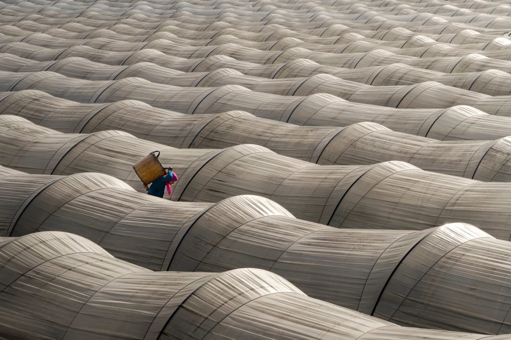 Δεύτερη θέση. «Θερμοκήπια Φράουλας». Μια νεαρή γυναίκα ξεκινάει τη δουλειά της σε θερμοκήπια με καλλιέργειες φράουλας, κοντά στην πόλη Ναζίλι στην Τουρκία