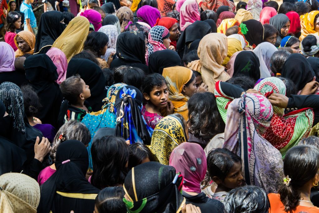 Πρόσφυγες Ροχίνγκια περιμένουν στην ουρά για το φαγητό που μοιράζει ο στρατός. «Η έκφραση της κοπέλας μου τράβηξε την προσοχή καθώς δείχνει την αβεβαιότητα που βιώνει» λέει ο φωτογράφος