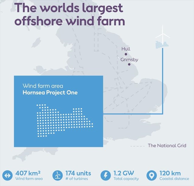 Στο Ηνωμένο Βασίλειο θα βρίσκεται σύντομα το μεγαλύτερο υπεράκτιο αιολικό πάρκο στον κόσμο. Η κατασκευή του έργου έκτασης 407 τετραγωνικών χιλιομέτρων έχει ήδη ξεκινήσει από την μεγάλη εταιρεία παραγωγής ηλεκτρικής ενέργειας Ørsted (πρώην Dong), με έδρα τη Δανία.