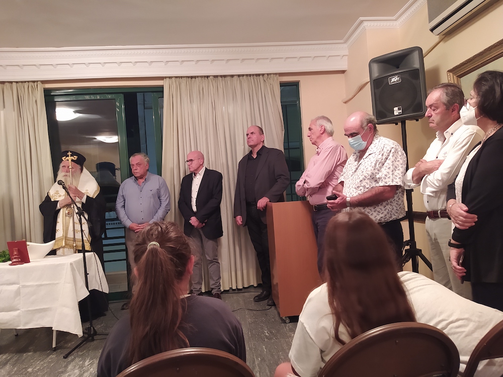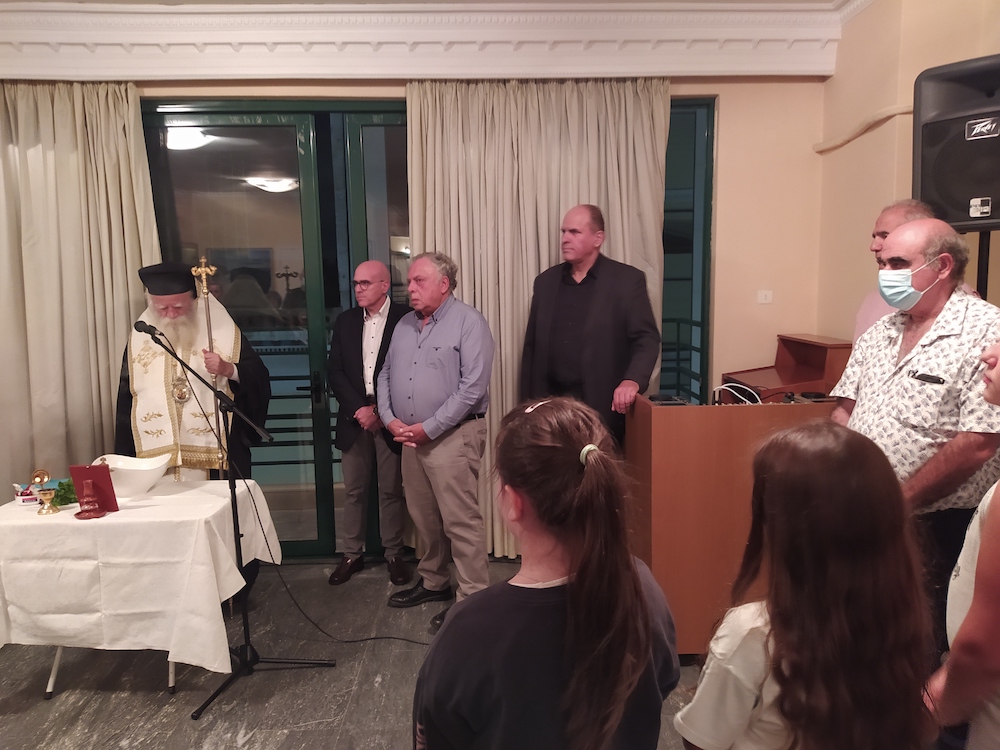 Στην εκδήλωση της Παρασκευής προηγήθηκε αγιασμός με το Μητροπολίτη κκ Σεραφείμ και ακολούθησε σύντομος χαιρετισμός του νέου προέδρου της Αδελφότητος κ. Δ. Παρίση, ο οποίος είχε ξεκινήσει από τα παιδικά του χρόνια την ενασχόλησή του με τις εκδηλώσεις του σωματείου.