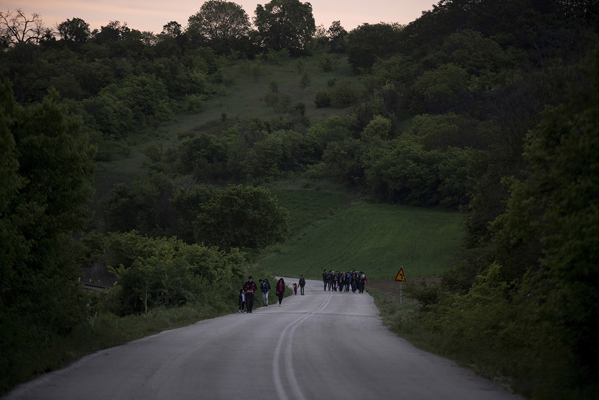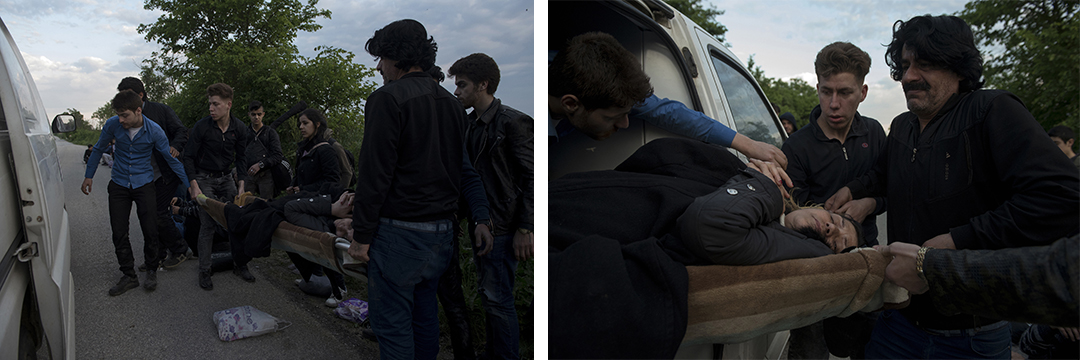 Το καραβάνι των 24 ατόμων έχει σπάσει σε τέσσερα κομμάτια. Μπροστά βαδίζει ένας πατέρας με την κόρη του σκαρφαλωμένη στην πλάτη και στην ουρά ακολουθούν τέσσερις άνδρες με ένα αυτοσχέδιο φορείο στους ώμους. Το έφτιαξαν τυλίγοντας μια κουβέρτα σε δύο σωλήνες για να μεταφέρουν μια ημιλιπόθυμη, διαβητική γυναίκα. Το ταξίδι τους ξεκίνησε μόλις πριν από πέντε ημέρες στο Αφρίν της Συρίας και συνεχίζεται στον Έβρο, στην επαρχιακή οδό που συνδέει τα χωριά Πύθιο και Ρήγιο. Θα περπατούν, μέχρι κάποιος να τους μαζέψει.