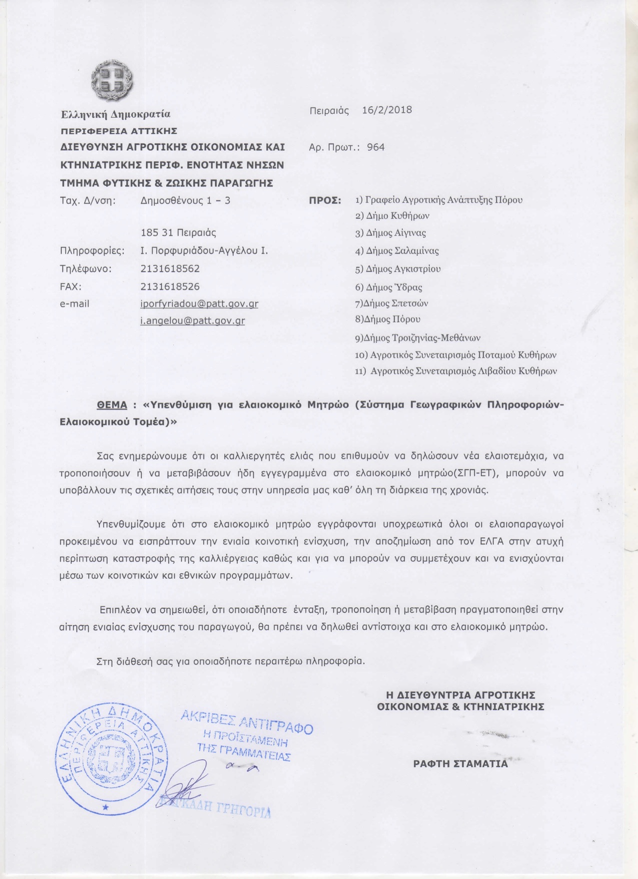 Υπενθύμιση για ελαιοκομικό μητρώο από τον Αγροτικό Συνεταιρισμό Ποταμού