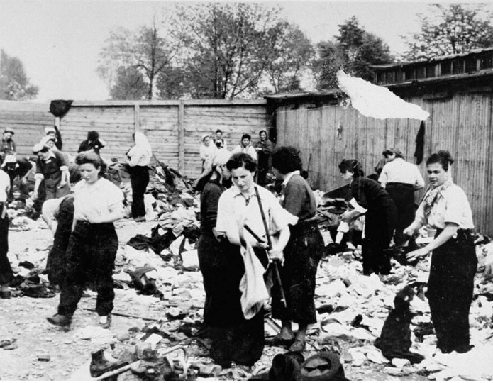 Κάναντα Κομάντος διαλέγουν ρούχα και αντικείμενα αιχμαλώτων που έχουν σταλεί στους θαλάμους αερίων.